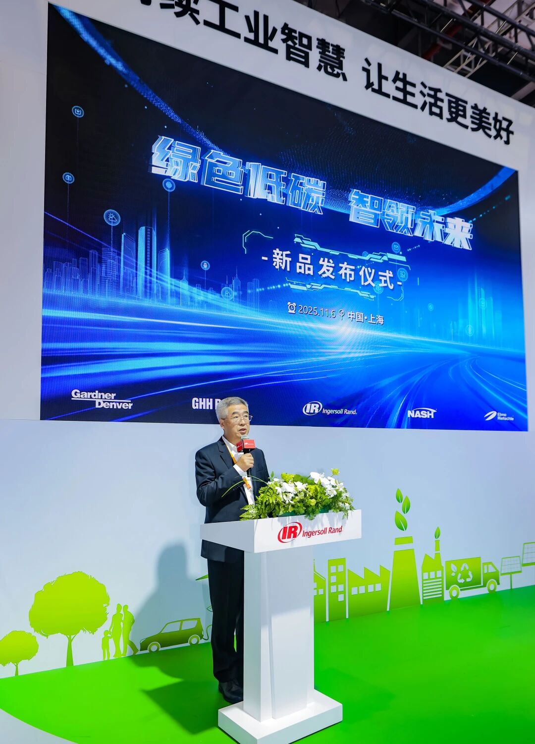 2025年11月6日,上海—第八届中国国际进口博览会(以下简称“进博会”)举办期间,百年工业集团英格索兰于6日下午举办了绿色低碳,智领未来”新品发布会。发布会上,旗下多款真空泵与风机全球及亚太首发产品惊艳亮相,其中全球首发的NASH DSN300干式螺杆真空泵凭借深度行业定制能力与数智化融合创新,成为发布会亮点之一。